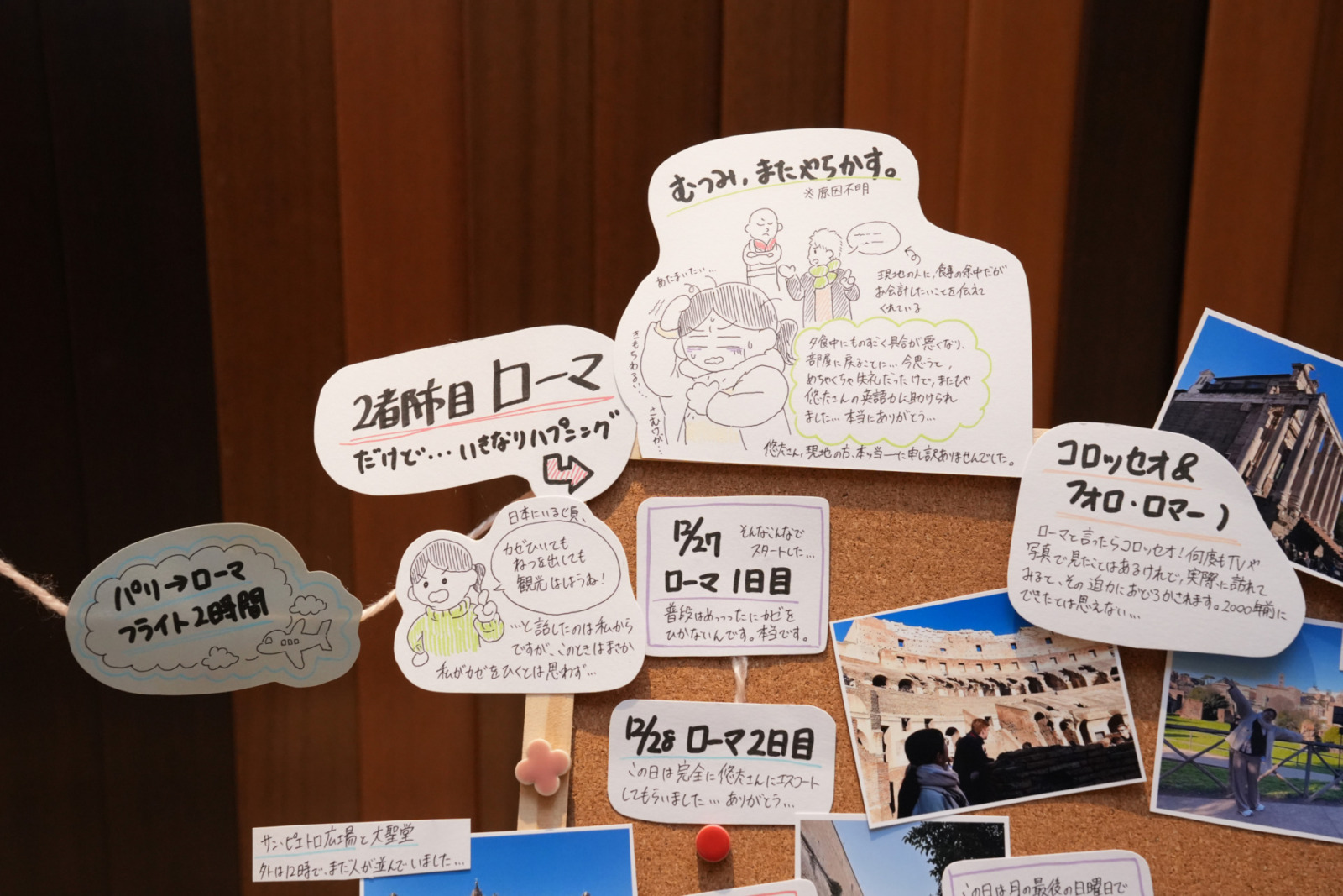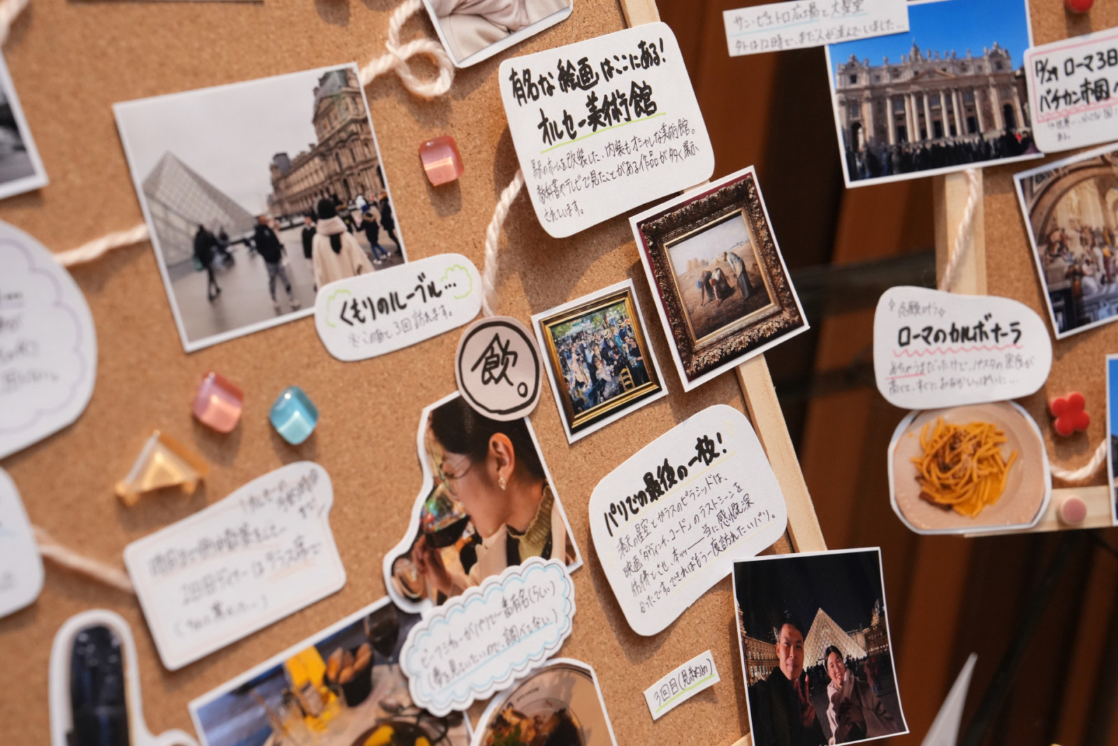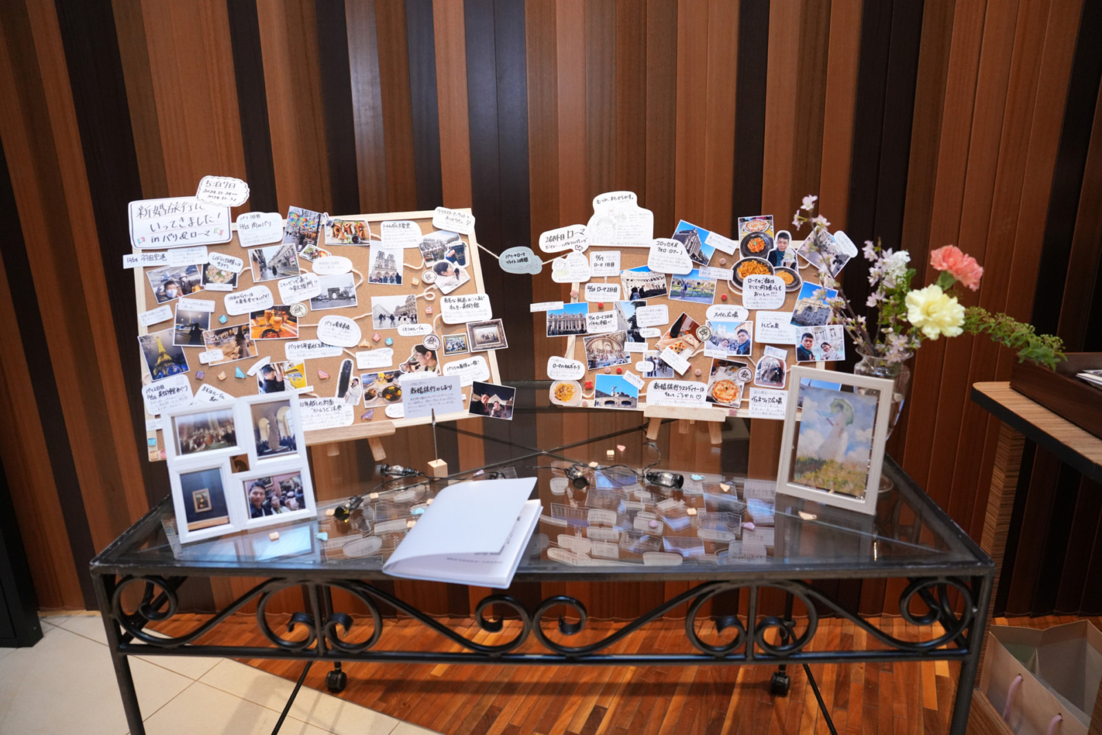 思い出のお写真とエピソードをボードにまとめて飾りました!