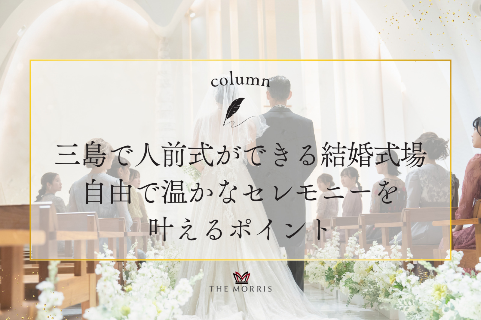 三島エリアでは「和と洋を組み合わせるスタイル」が主流です。大社で厳かな神前式を執り行い、その後はホテルでウェディングドレスにお色直しをして披露宴を行う。伝統を大切にしながらも、憧れの洋装も楽しめる“いいとこどり”の結婚式は、多くの新郎新婦に選ばれています。THE MORRISでも、和装と洋装の両方を取り入れたウエディングが非常に人気です。