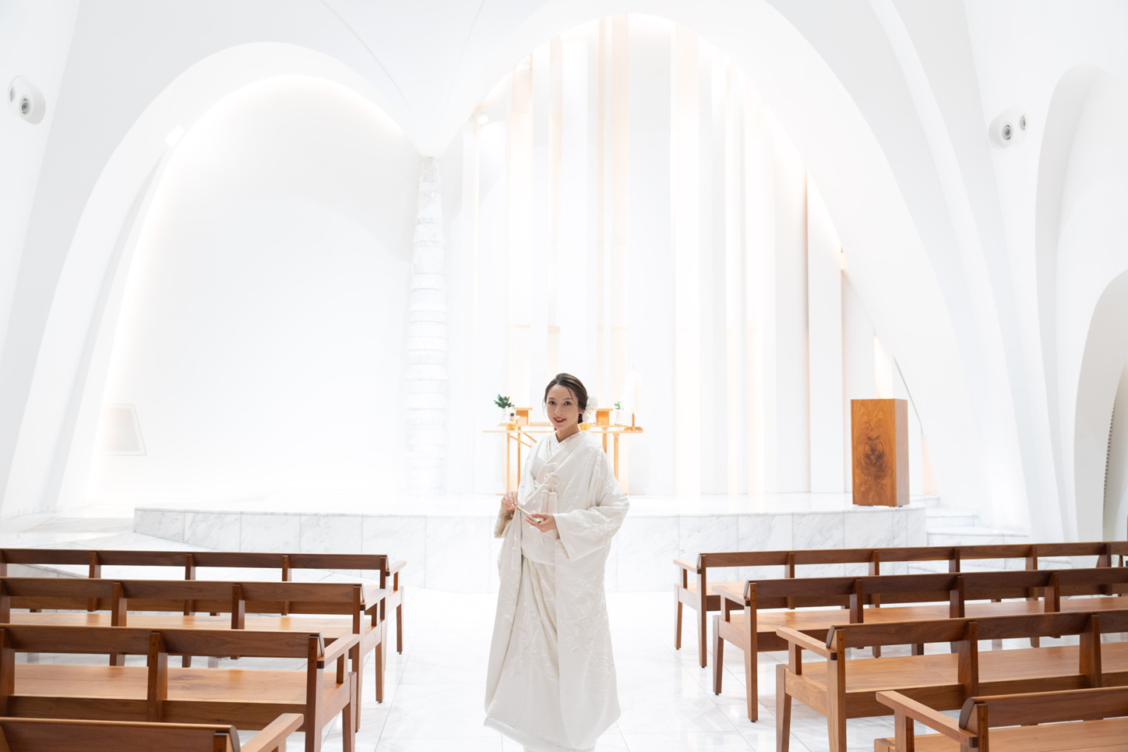 天候に左右されず、和装でも映える設計となっており、白無垢姿での挙式も人気です。