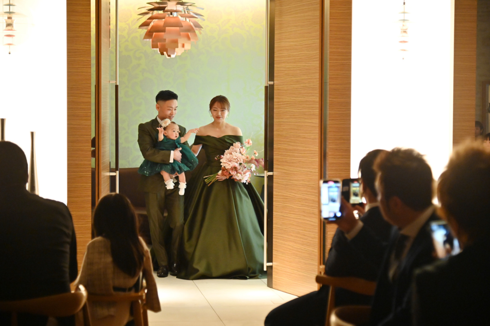 大切なゲストに見守られながら、家族で迎える温かな入場に会場は大きな拍手に包まれました。
