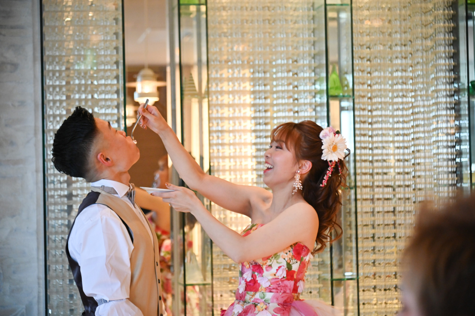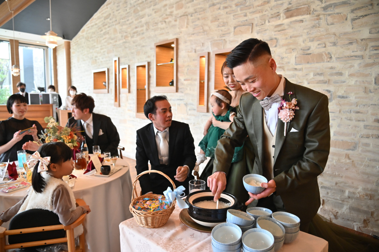 新郎新婦自らゲストへ一杯一杯よそい、心温まるおもてなしで会場中が笑顔に。