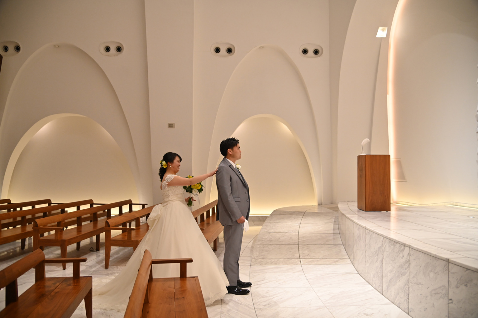 前撮りは、三嶋大社とホテル内チャペル「ソルミエ」で行われたおふたり。