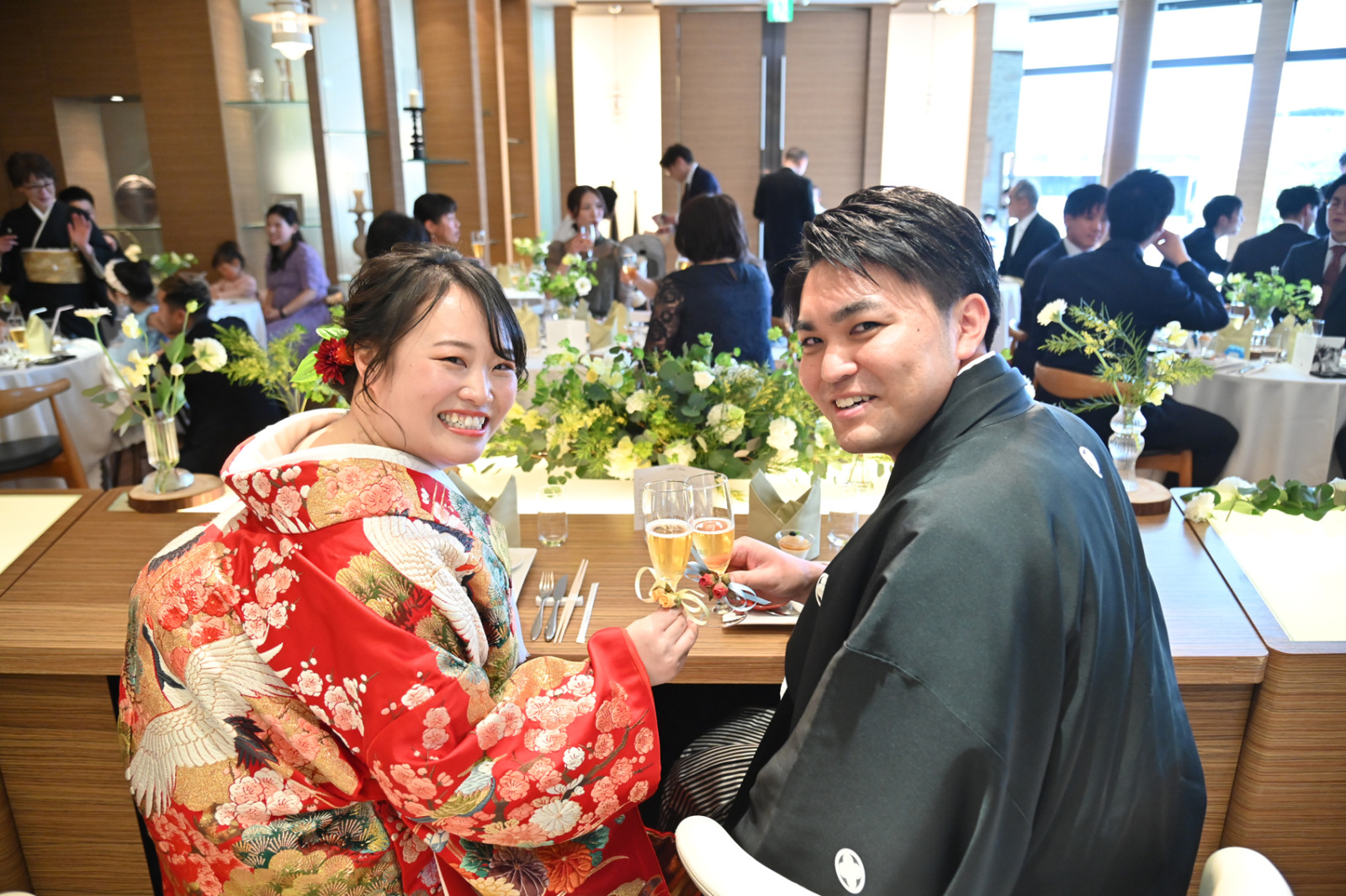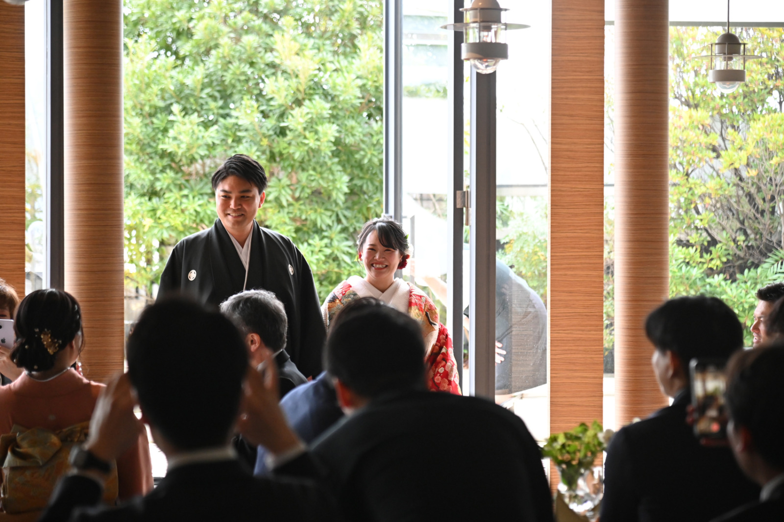 色鮮やかな色打掛にお召し替えされたおふたりが