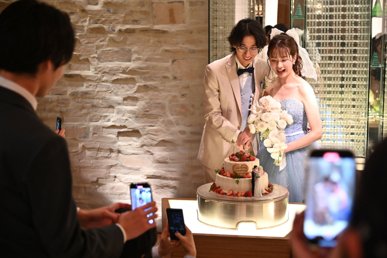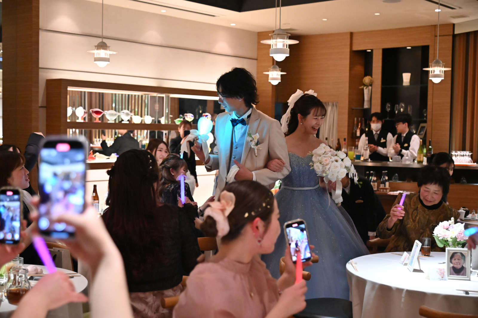 お色直しではブルーのドレスに身を包んだ新婦Yukieさんが登場し、会場からは大きな歓声があがりました。