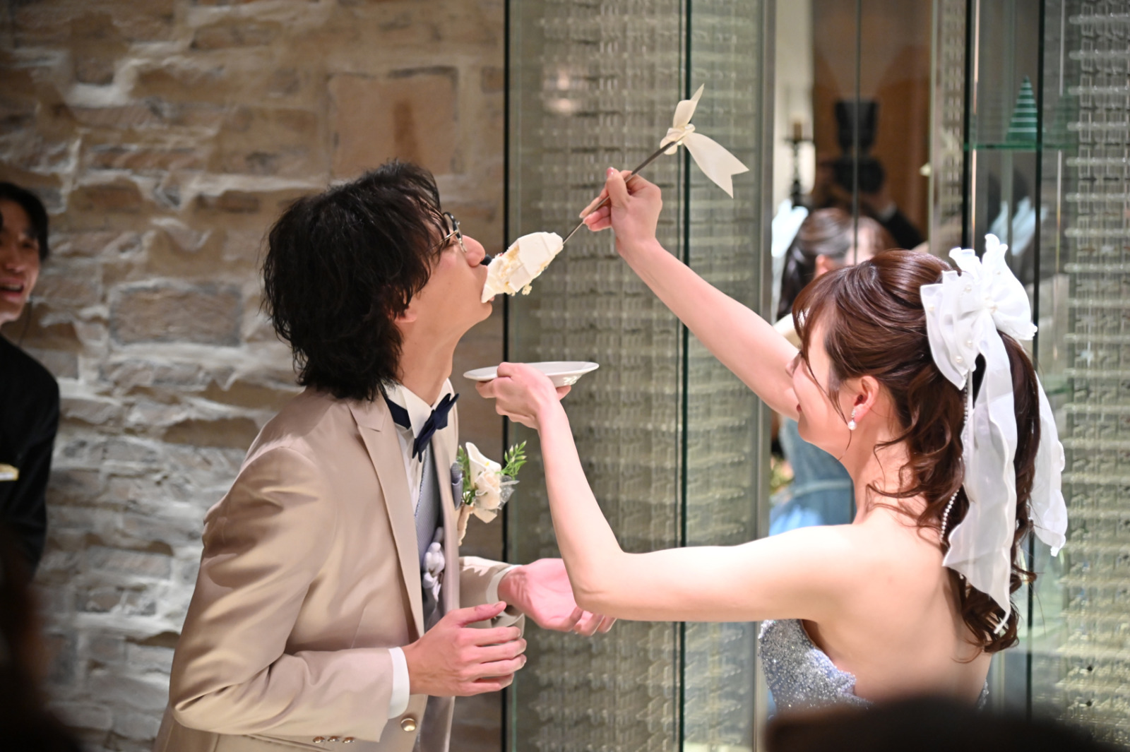 ケーキ入刀の後は、新婦から新郎へのビッグスプーンでのファーストバイト!