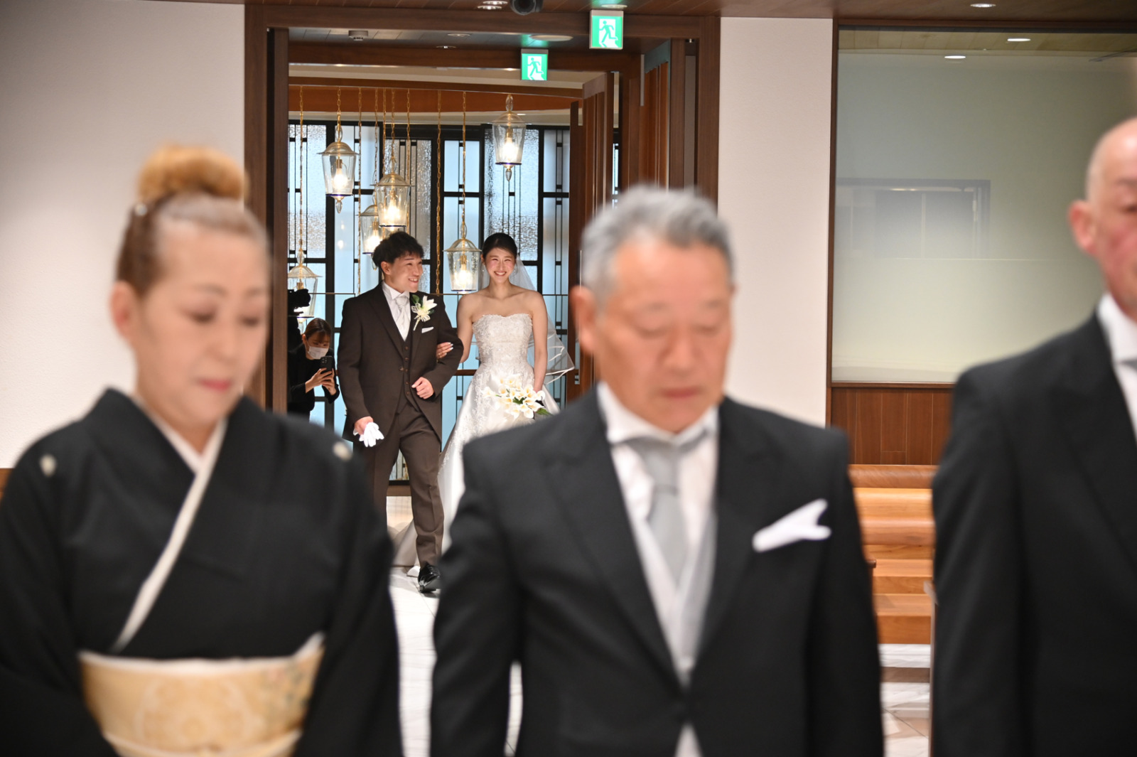 チャペル「ソルミエ」で行われたおふたりのシビルウェディング。