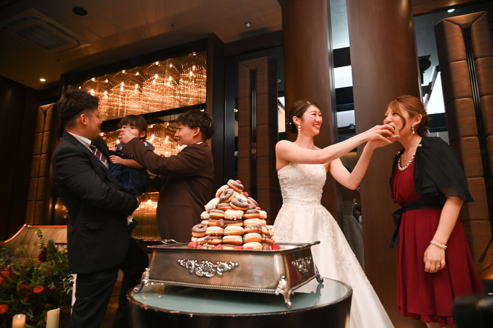 ウェディングケーキは、おふたりの大好きな“ドーナツタワー”。