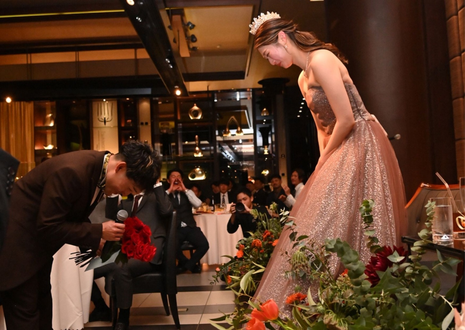 一輪一輪に想いを込めたバラを手渡す姿に、