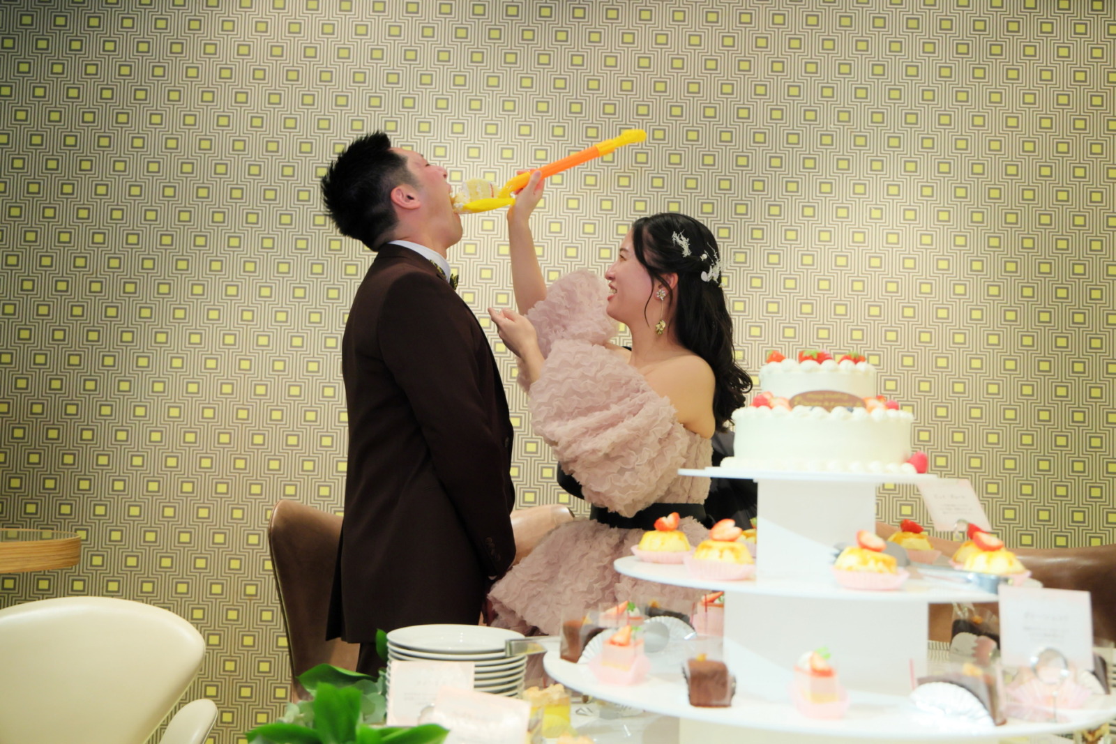 続く再入場では、おふたりはカラードレスへとチェンジし、