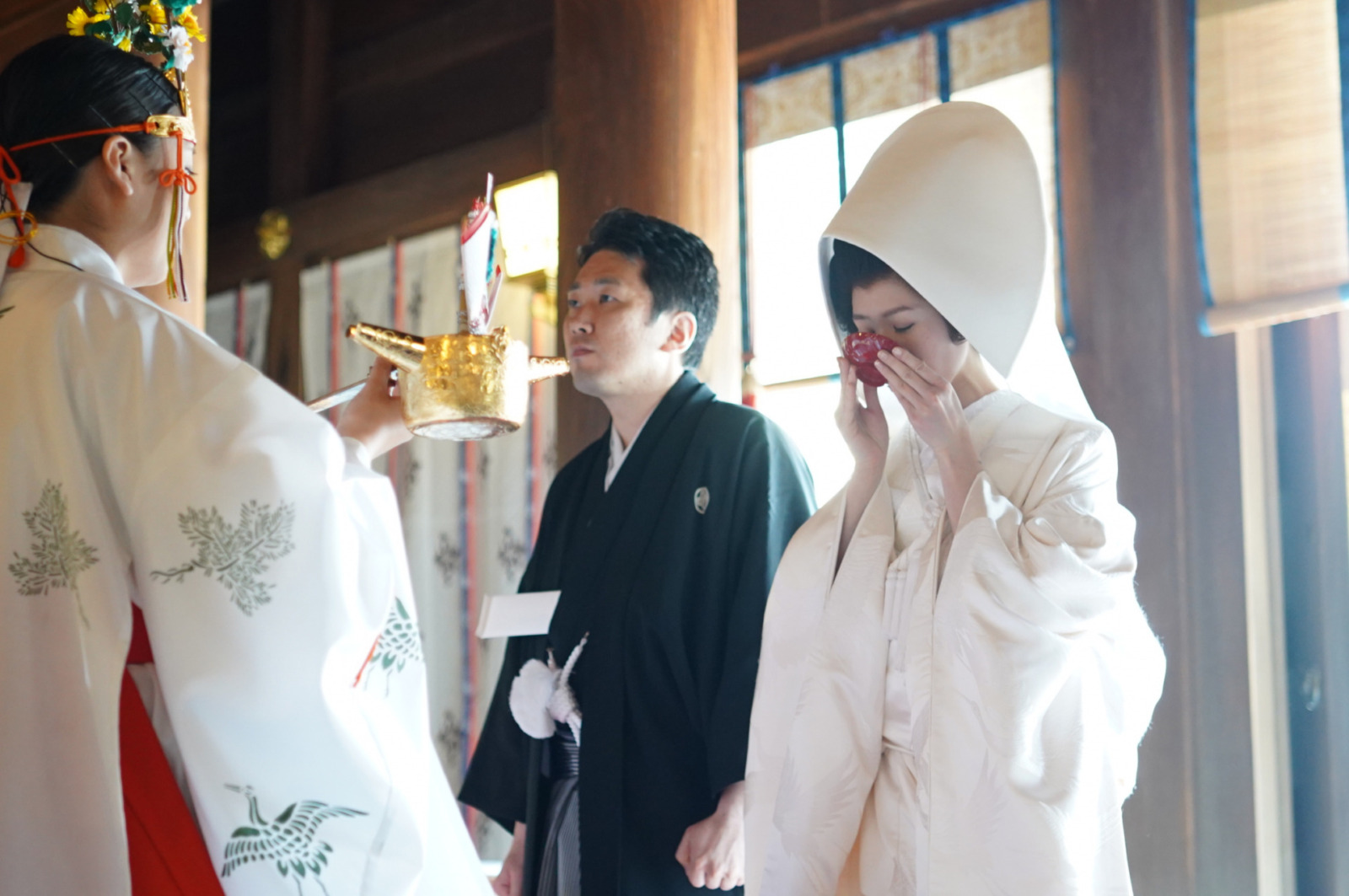 白無垢に綿帽子という日本の伝統美をまとった新婦様。