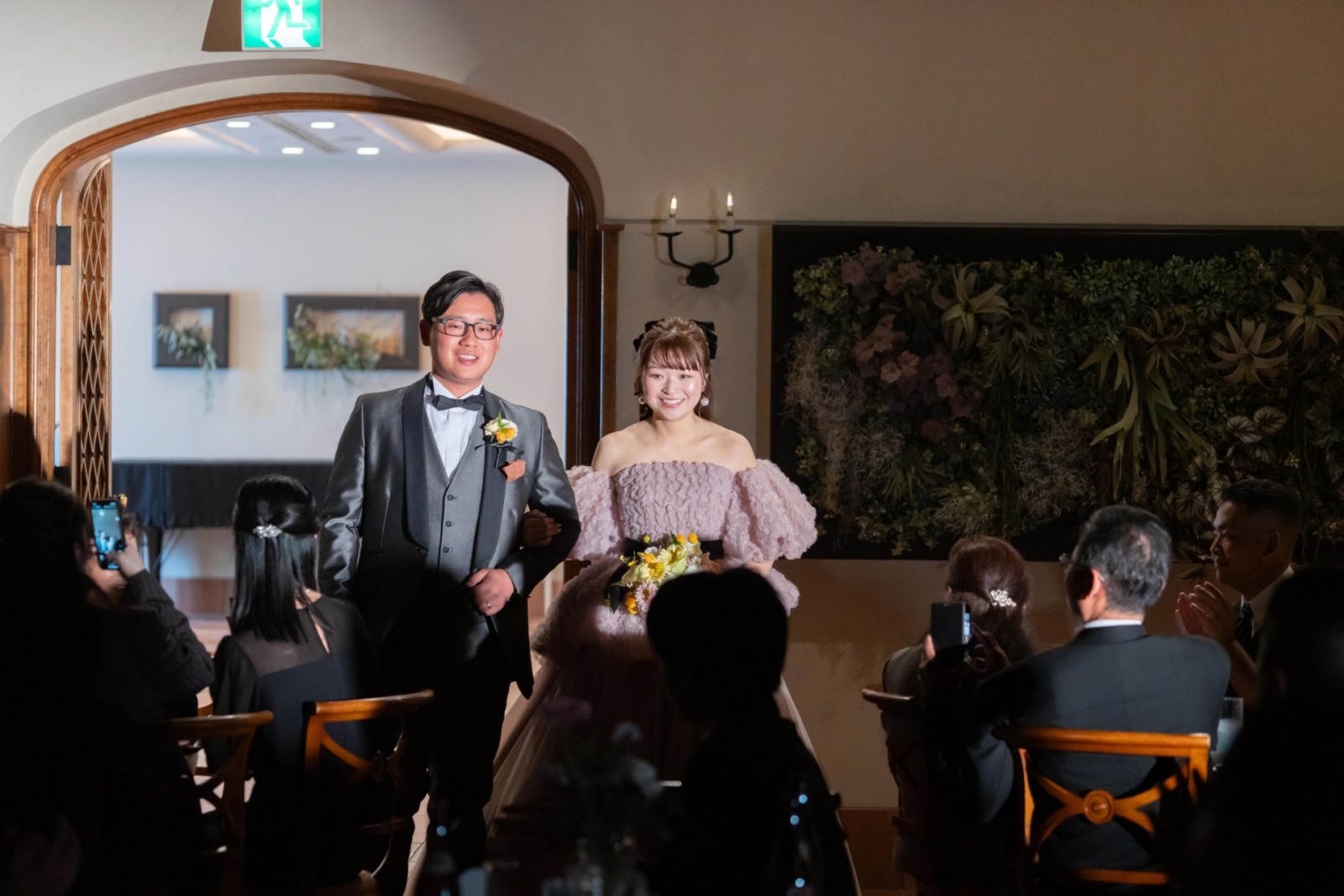 ゲスト一人ひとりに見守られながら誓いを交わす、