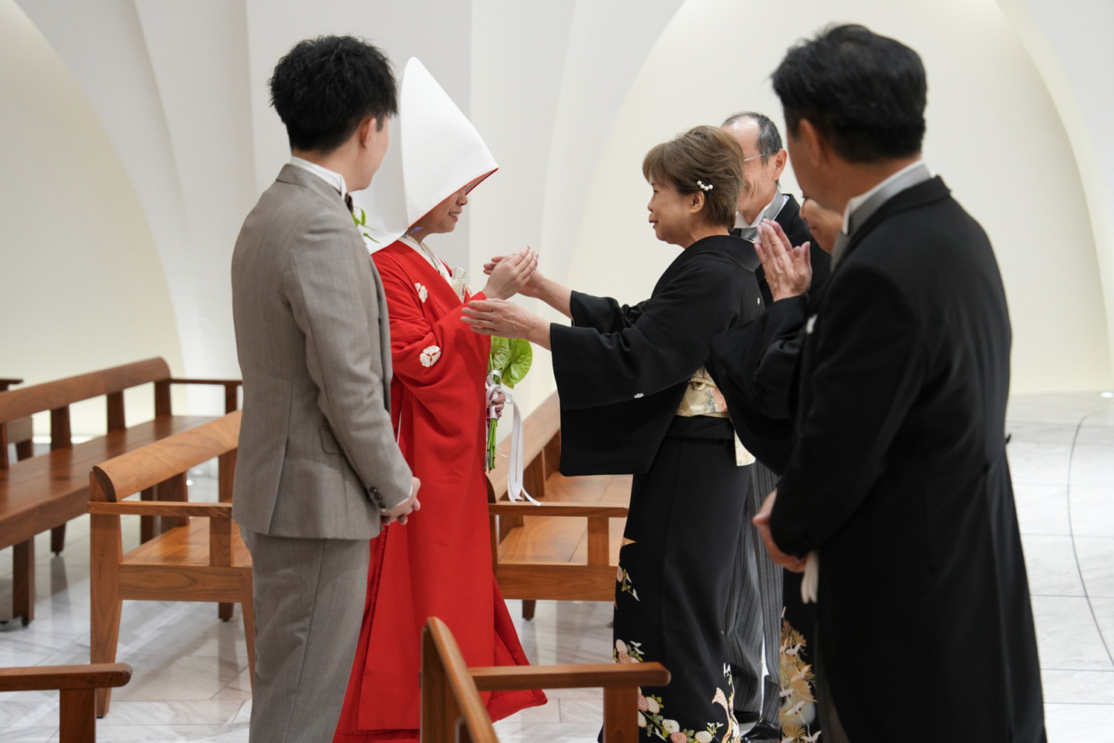 和装でありながらチャペルで誓うその姿は、